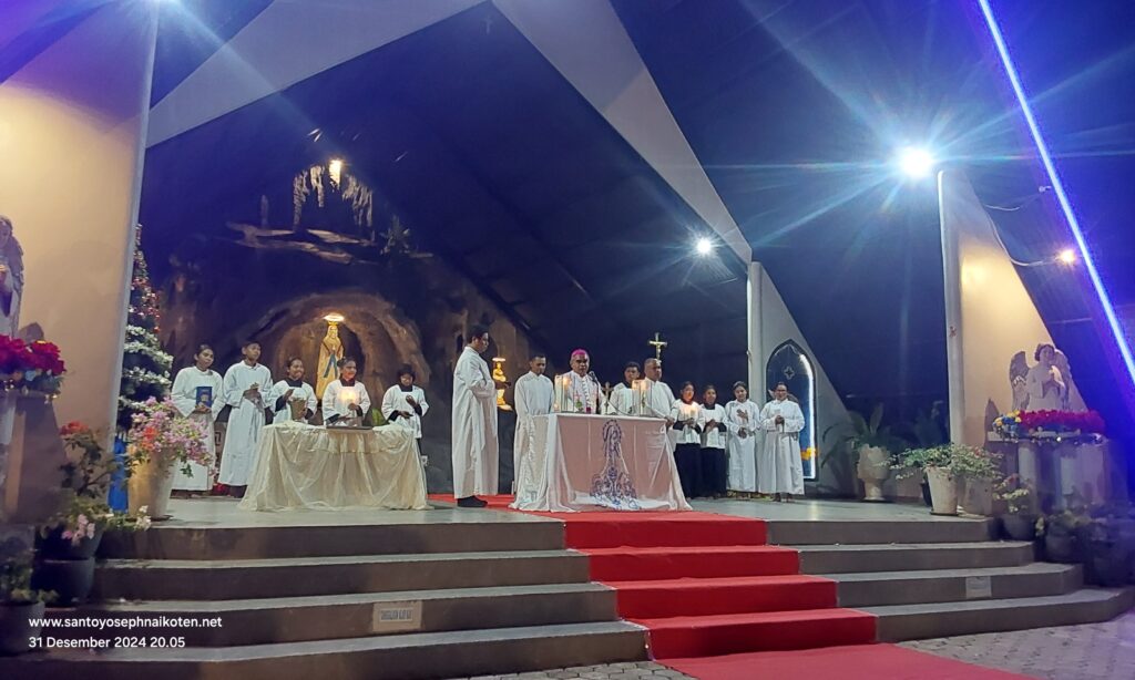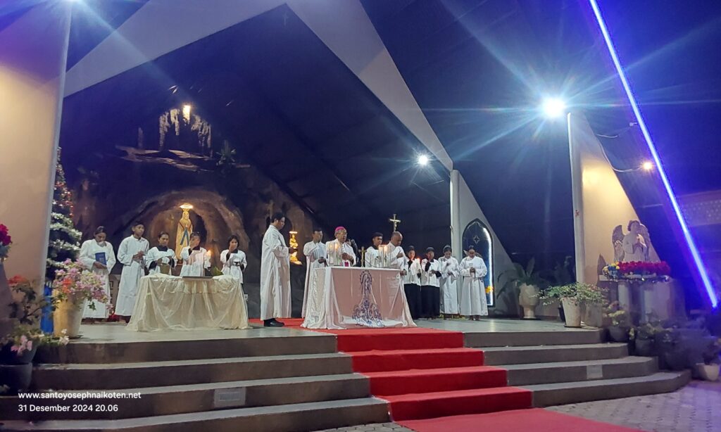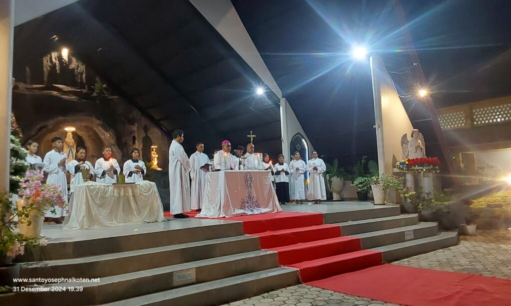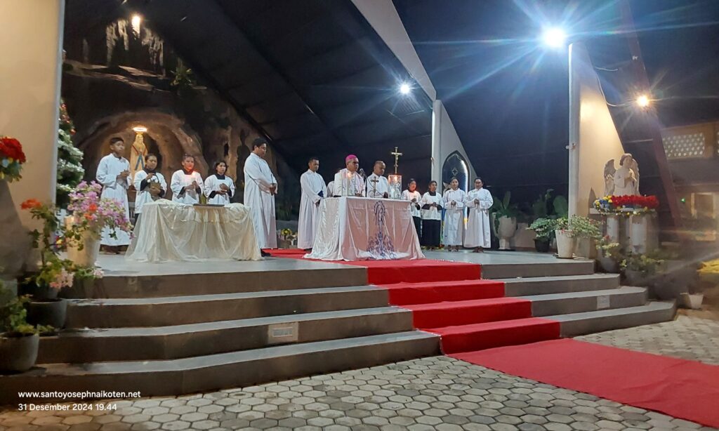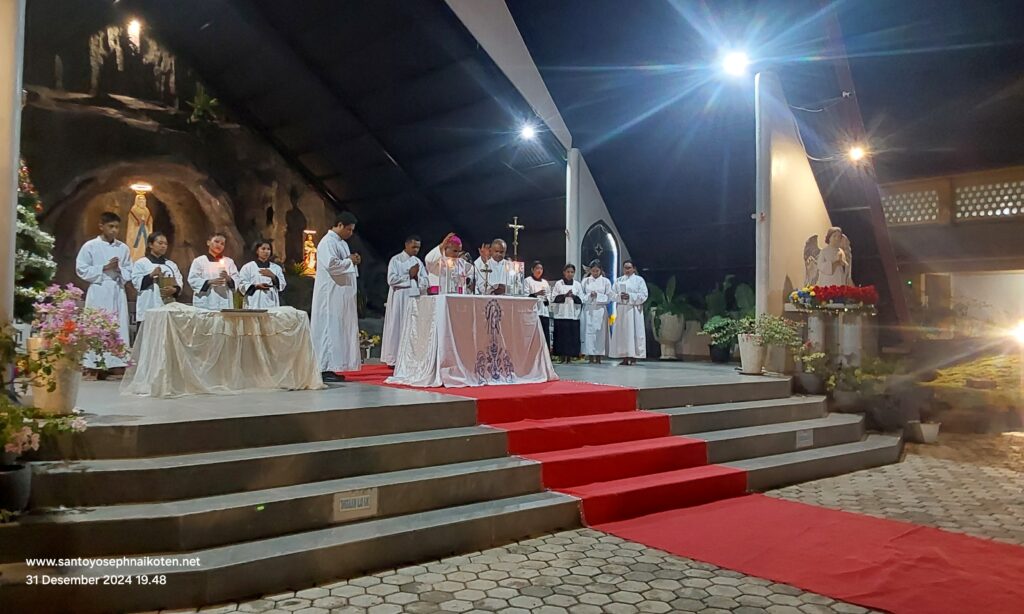 Uskup Agung Kupang Mgr. Hironimus Pakaenoni pada tanggal 31 Desember 2024, memberkati Gua Maria Immaculata di Taman Doa Maria Immaculata Paroki St.Yoseph Naikoten Kupang.